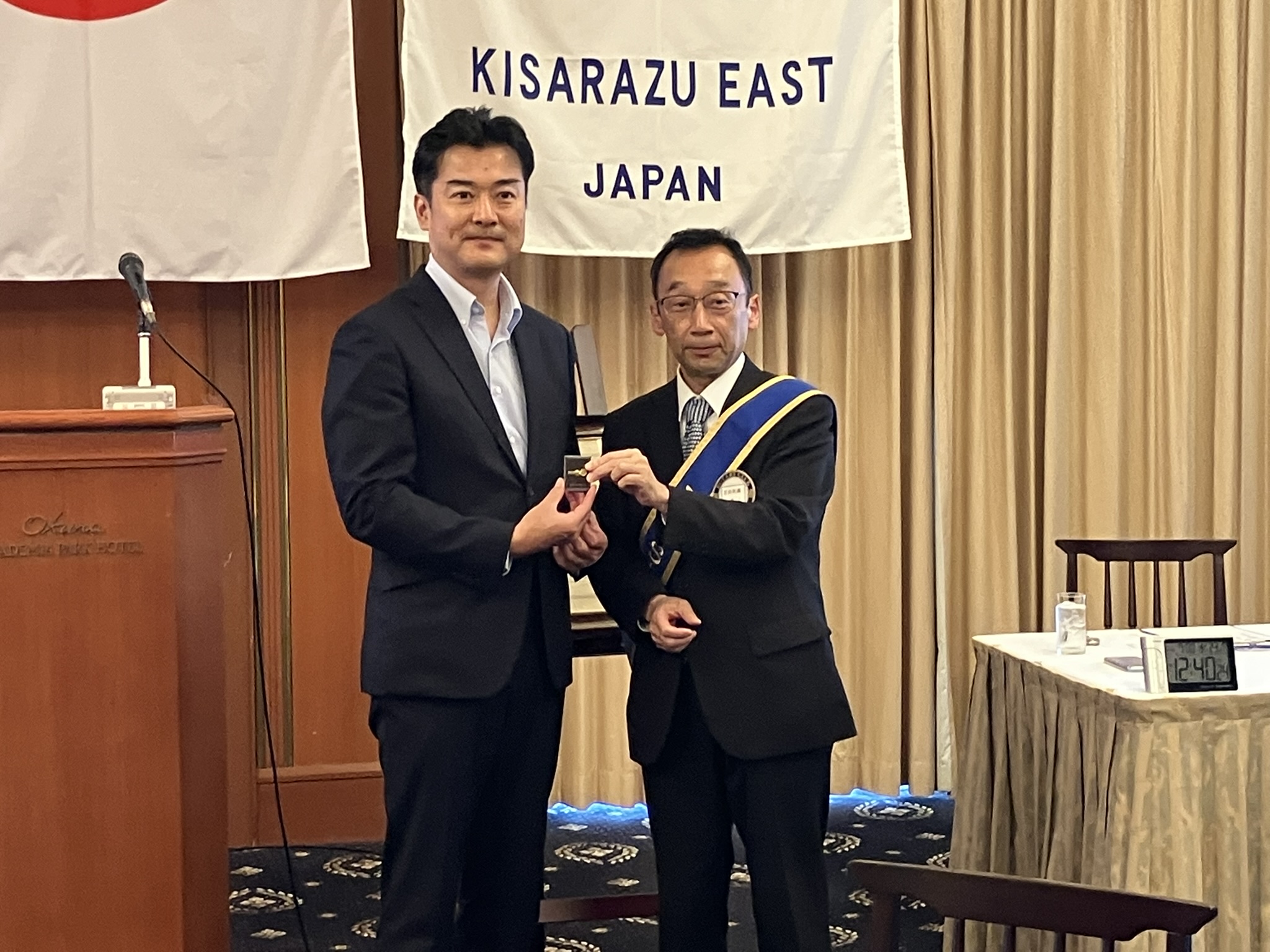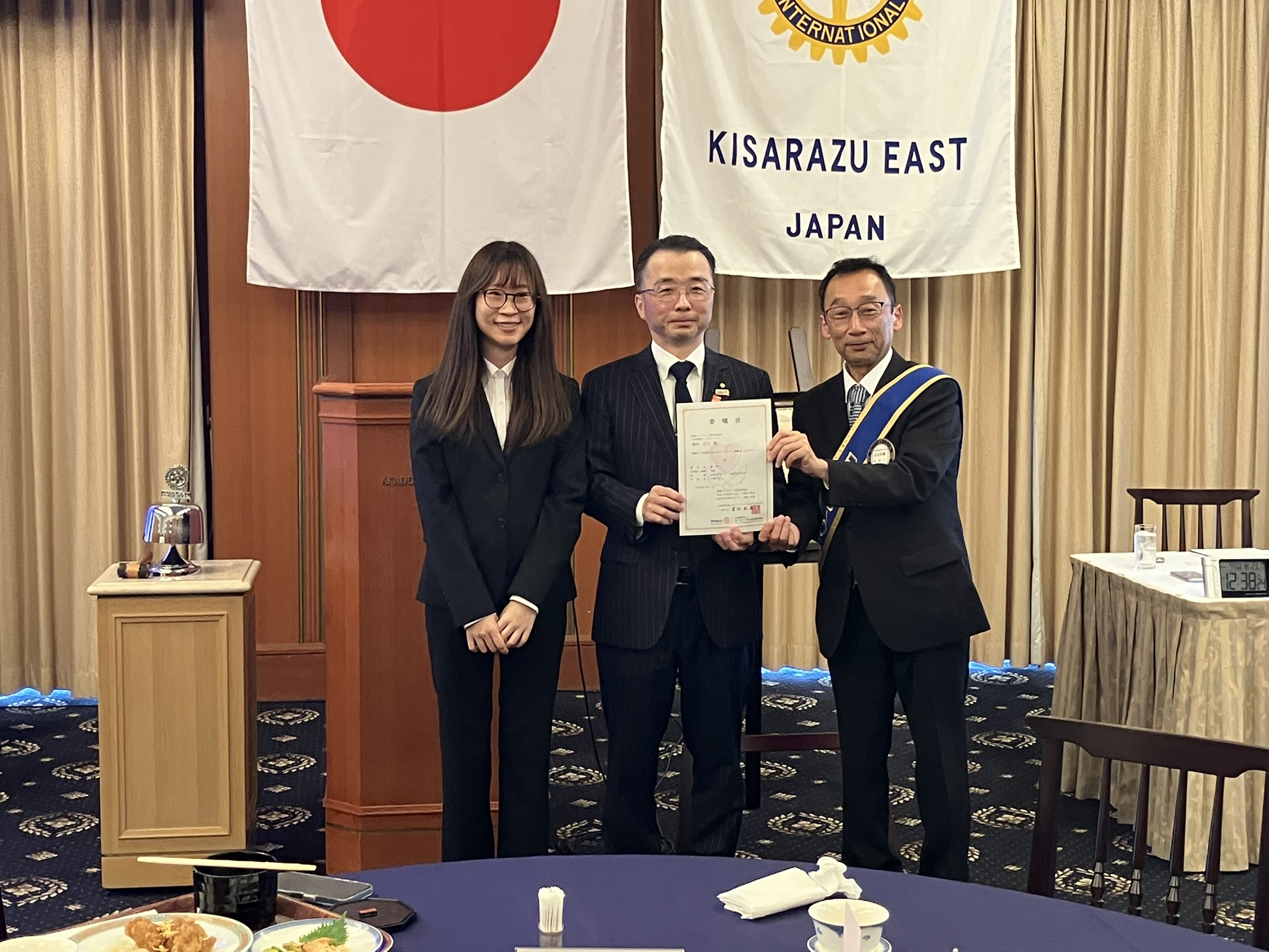 その他、新会員予定者の内藤淳様の入会式と新たな米山奨学生範琴(はん ちん)様のご挨拶がありました。